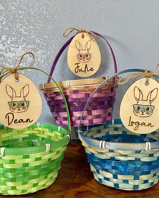 Hipster Bunny Basket Name Tag