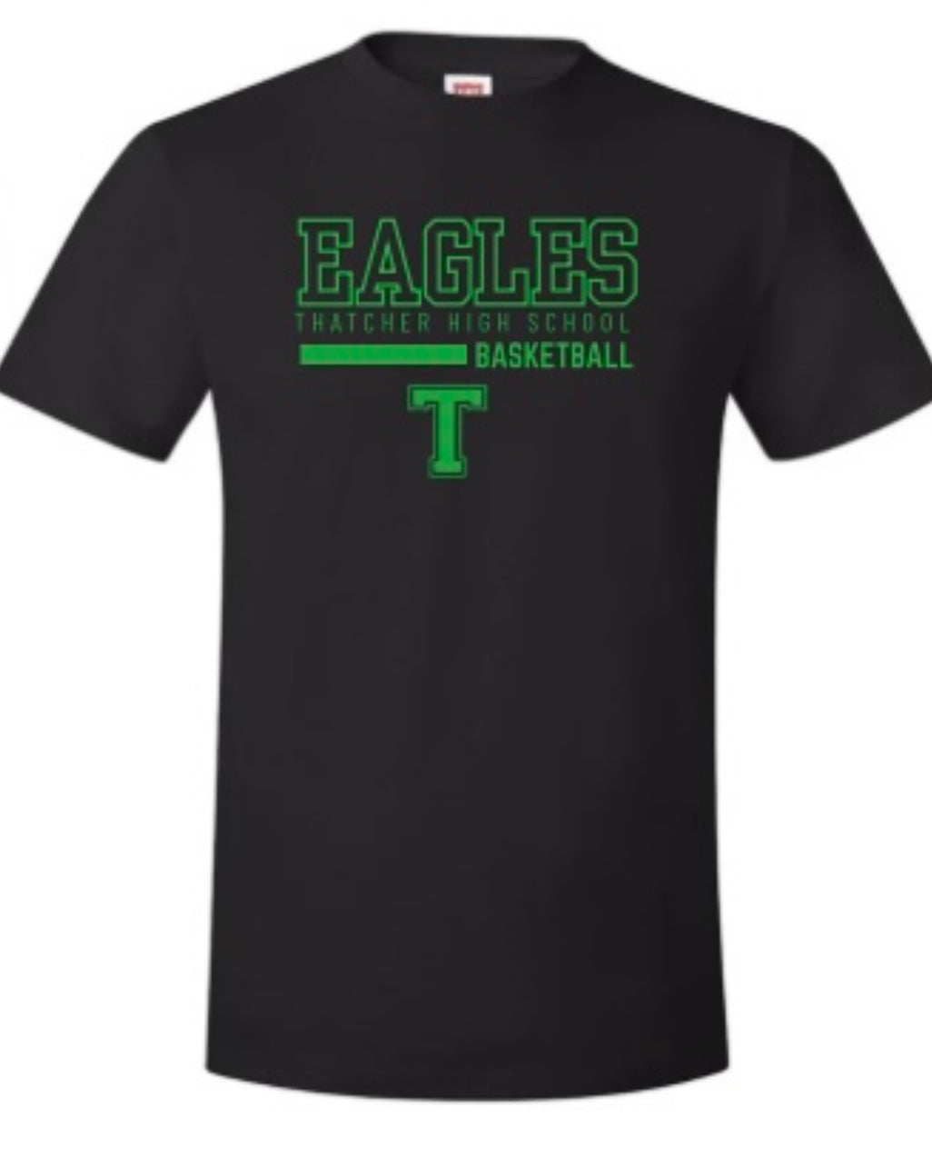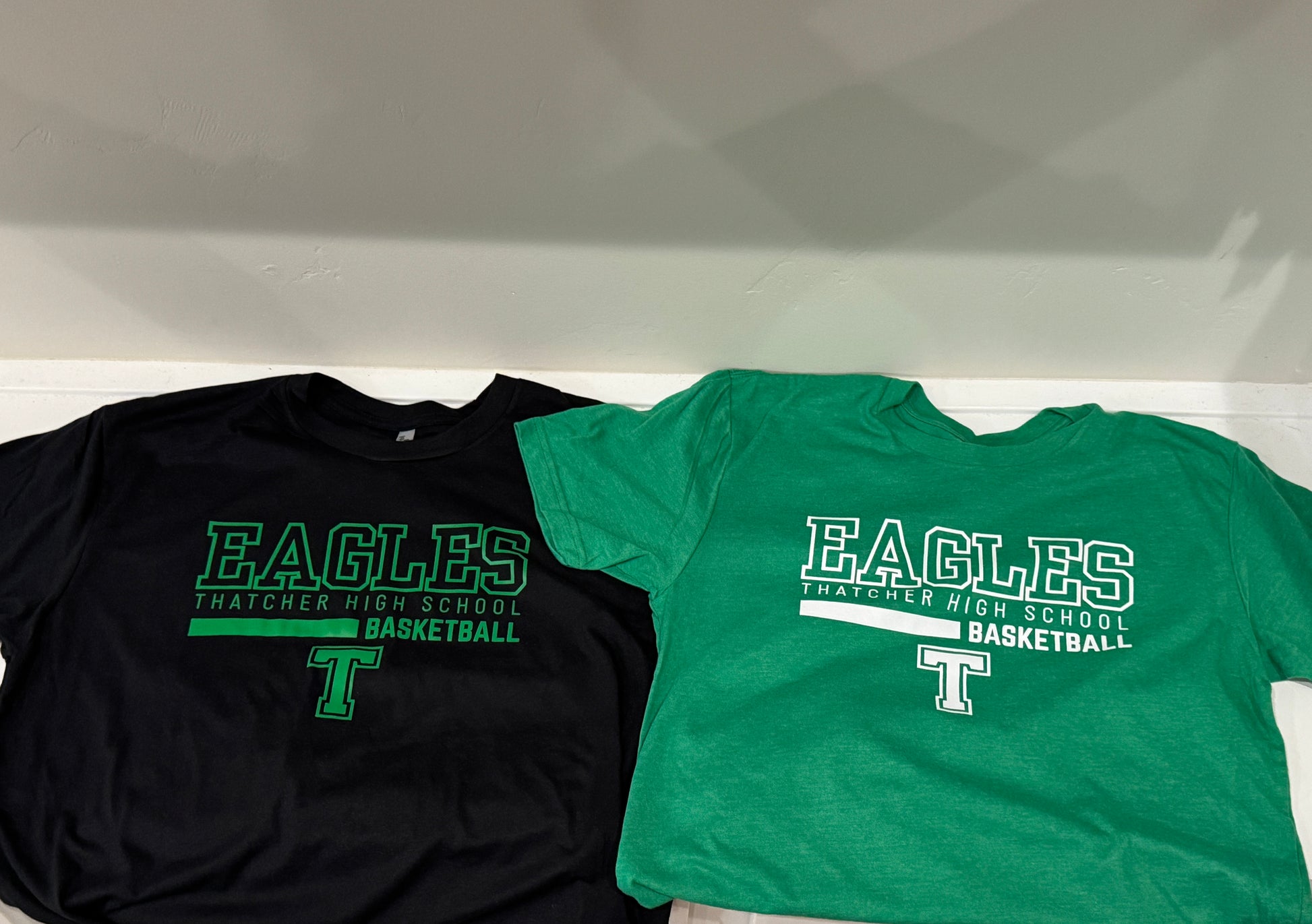 Select your choice of a black, green, or gray Eagles t-shirts. A portion of every purchase sends money directly to the Thatcher Girls Basketball team.